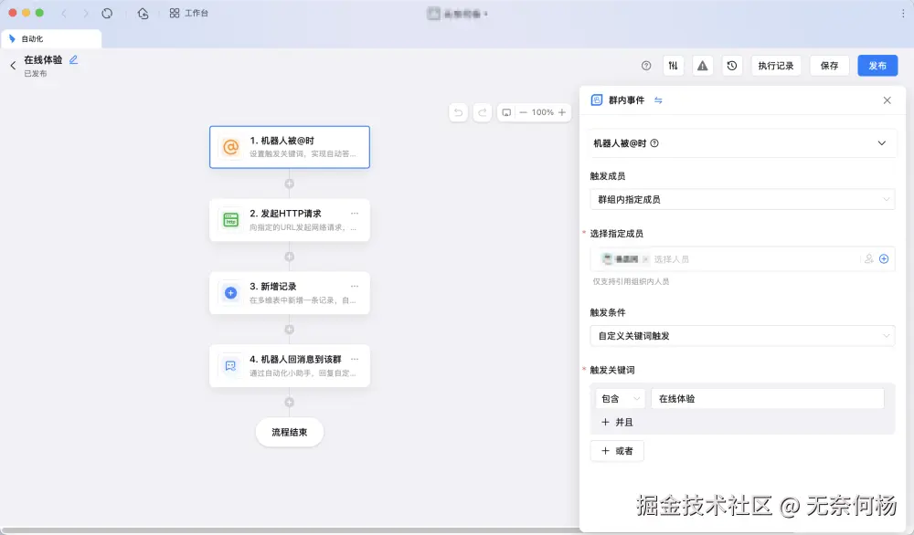 最开始我使用的是群聊自动化机器人,效果如下