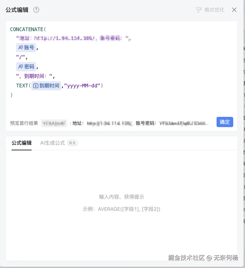 另外复合输出是一个公式,只需关系账号、密码、到期时间列就好了。