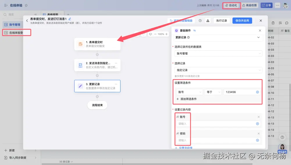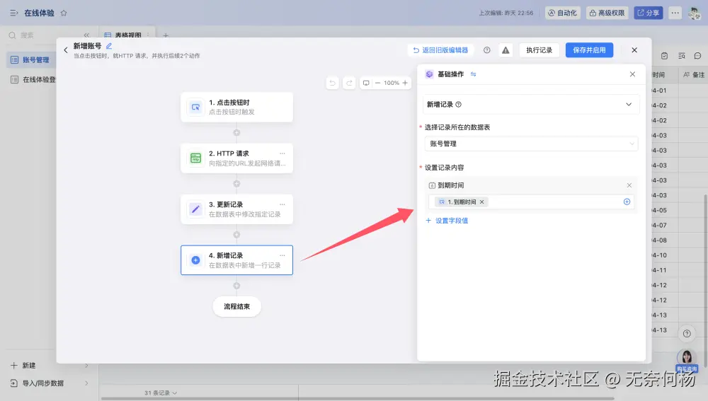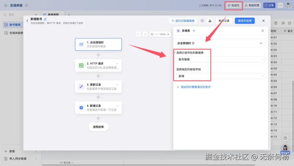 同时配置了自动化流程,当点击表格记录的按钮时触发