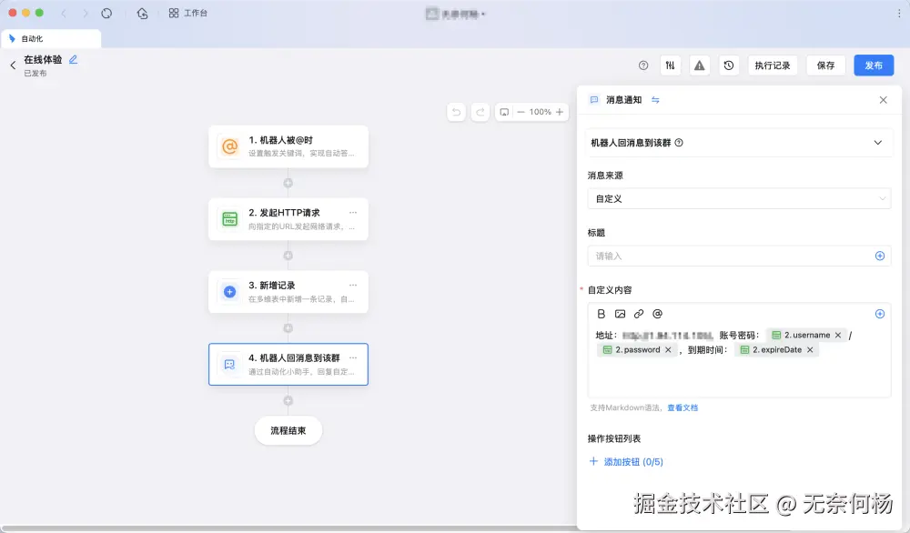 从使用上来看还可以,但是有一个很大的问题,钉钉的这种自动化消息手机端不可复制,挺烦人的。