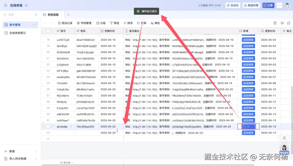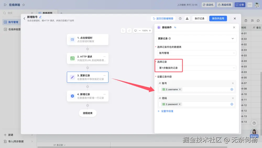 在发送http请求拿到响应后,更新按钮点击的触发记录,将响应的账号密码更新到记录中