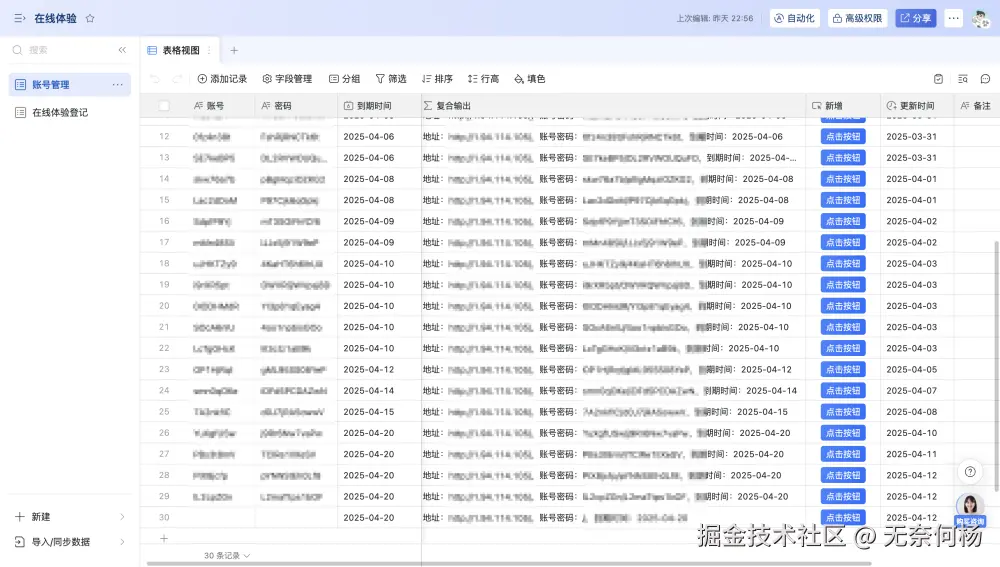 于是之后创建了“在线体验”的多维表格,大致如下
