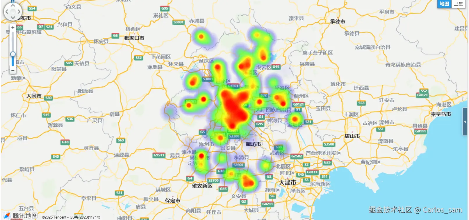 热力图是一种通过颜色分布来直观描述地理现象的空间分布与变化趋势的地图表现手法,能够呈现一些原本不易理解或表达的数据,比如密度、频度、温度等。