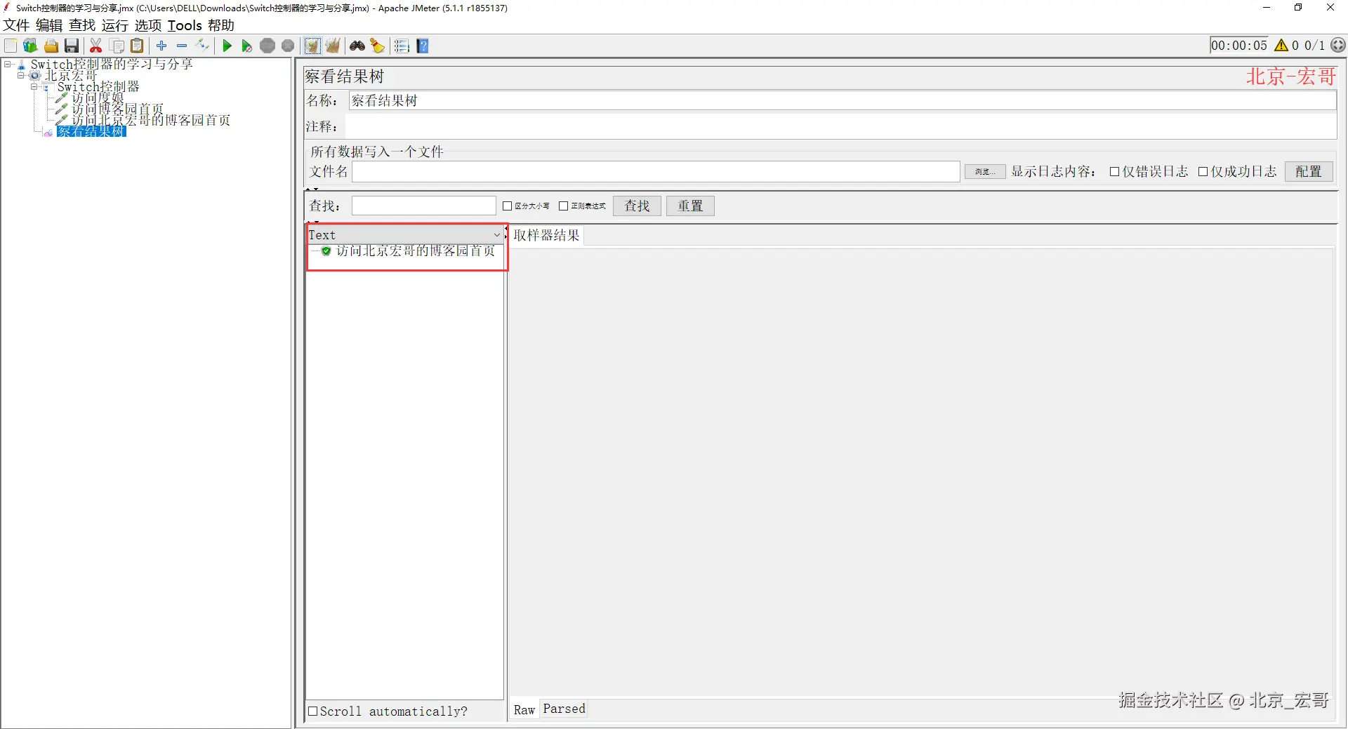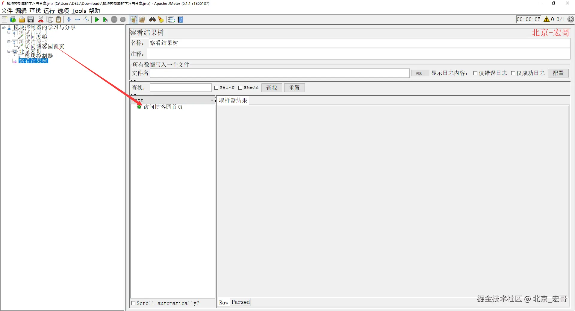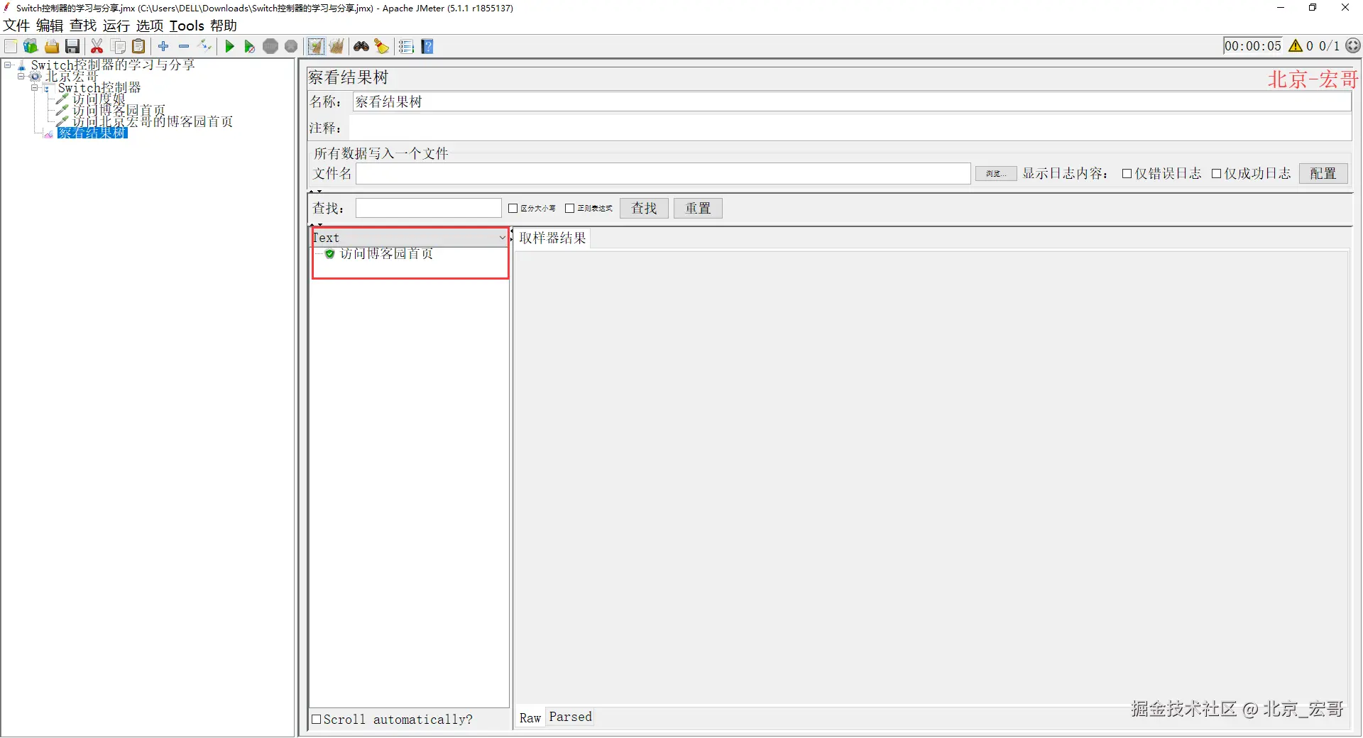 2、配置好以后,运行JMeter,然后查看结果树,如下图所示: