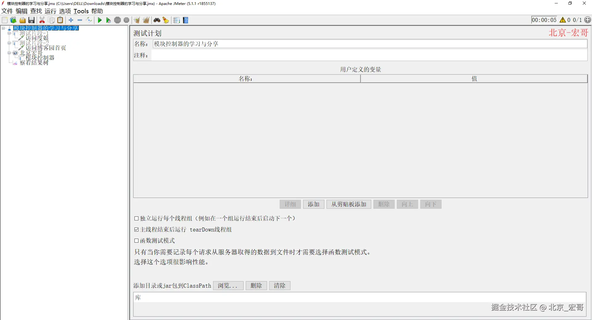 (1)控制测试计划执行过程中节点的逻辑执行顺序,如:Loop Controller、If Controller等;
