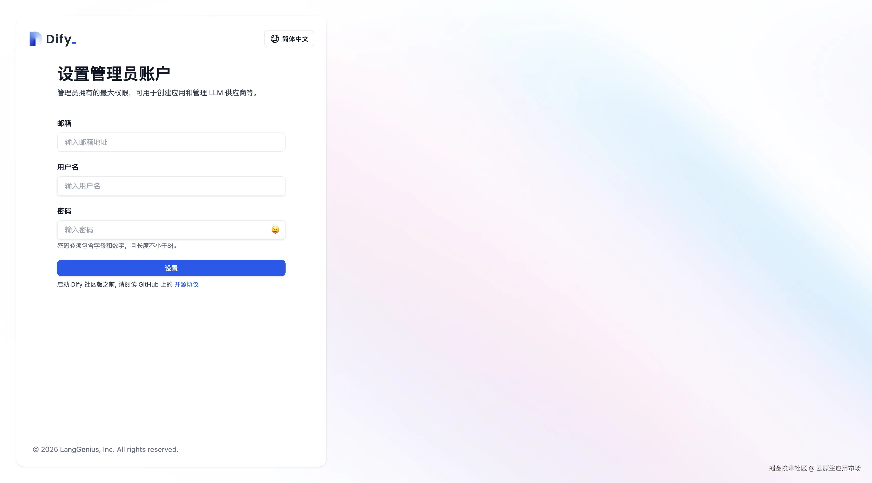 步骤一:访问 Dify 创建管理员账号密码,邮箱可以随便输入,进入到主页头像选择设置—模型供应商,我用的是硅基流动,直接生成密钥填入进去。