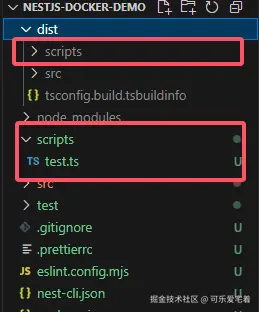 这将会导致一个问题,当我们执行:npm run start:prod的时候,对应执行node dist/main会找不到对应模块,此时我们应该修改启动命令或者在tsconfig.build.json文件中忽略该目录!