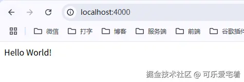 成功启动后,访问http://localhost:4000应该如下图(默认3000我改了端口号)所示: