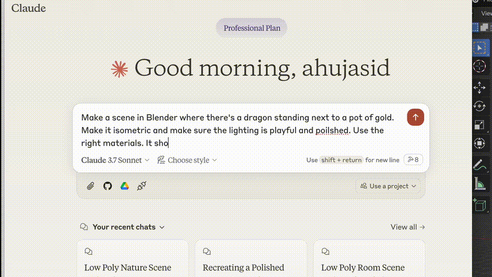 开发者 Siddharth Ahuja 在连接 Blender 后感叹道,MCP 真正开启了智能自动化的新时代。