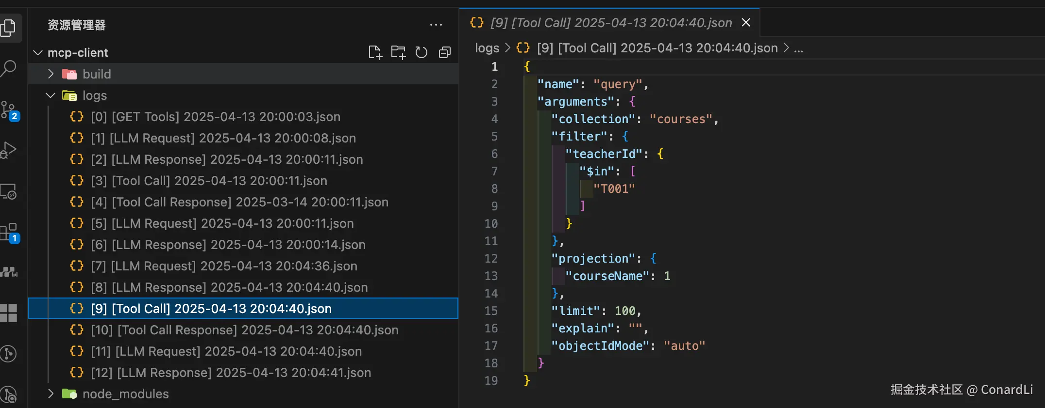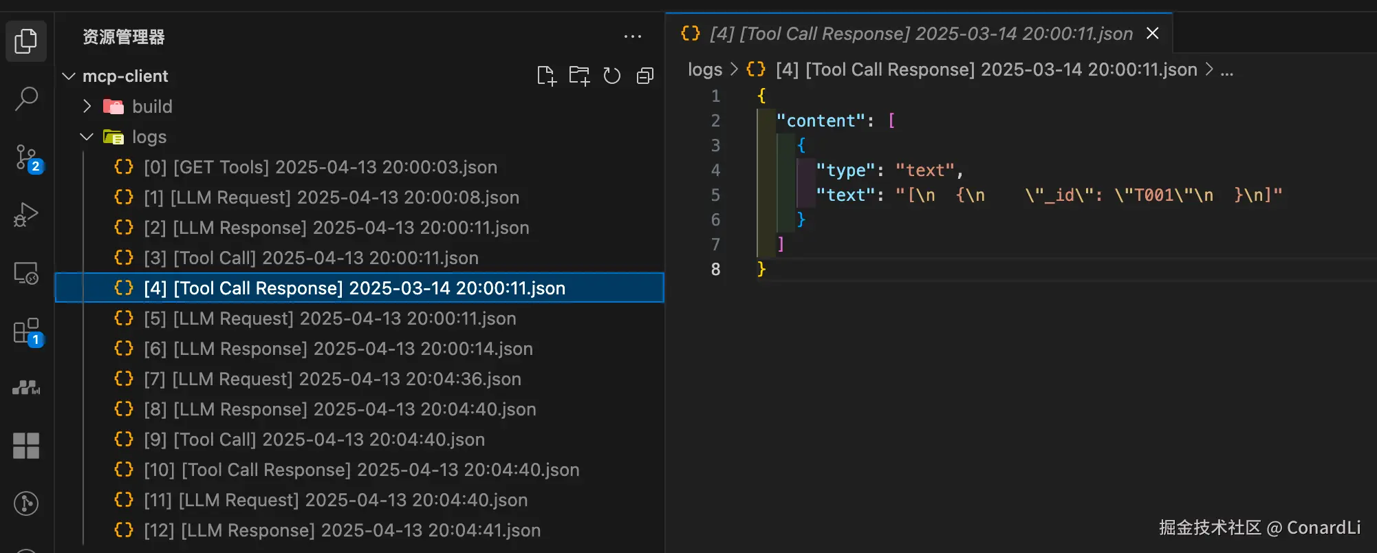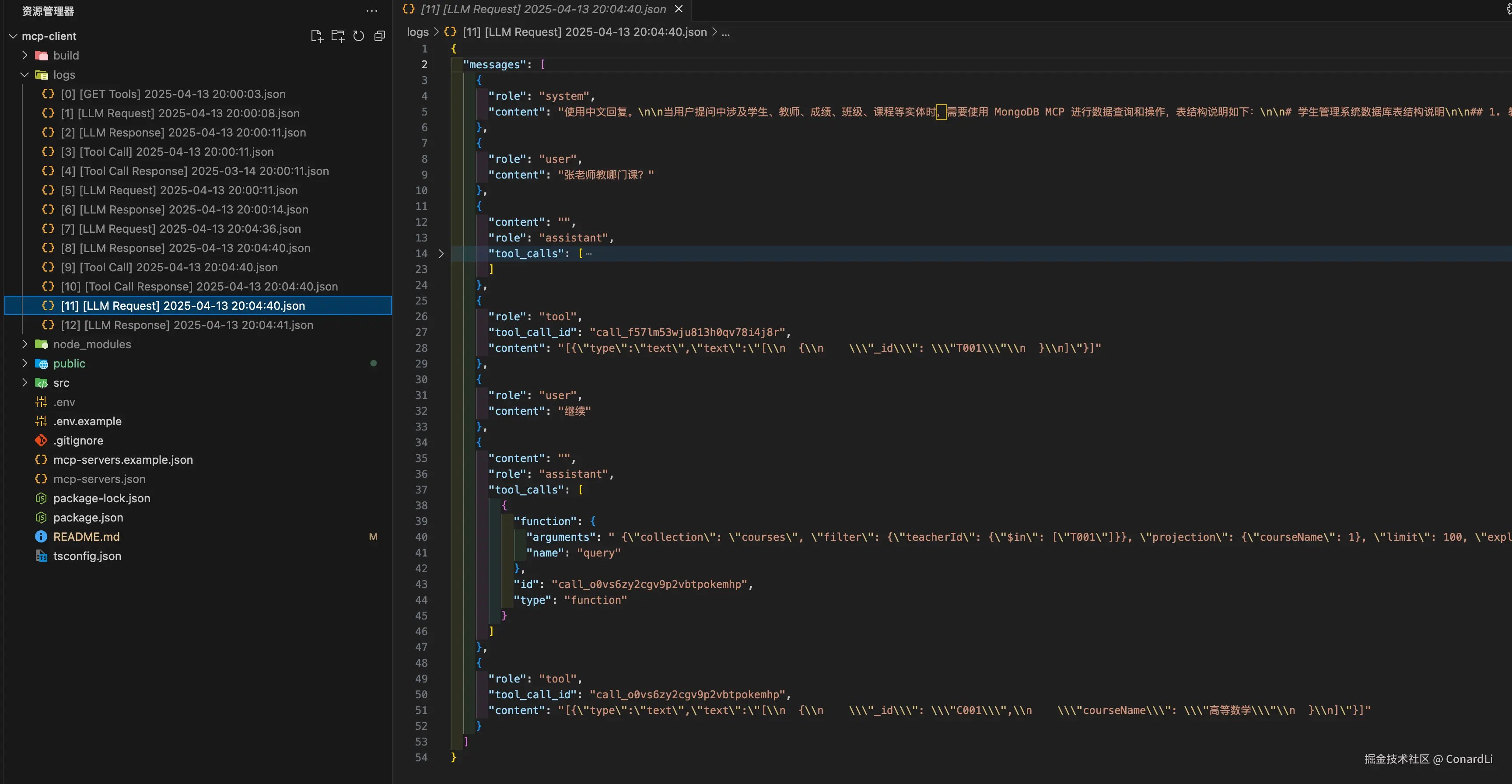 MCP Client 包含一个全面的日志系统,详细记录所有关键操作和通信。日志文件保存在 logs/ 目录中,以 JSON 格式存储,方便查询和分析。