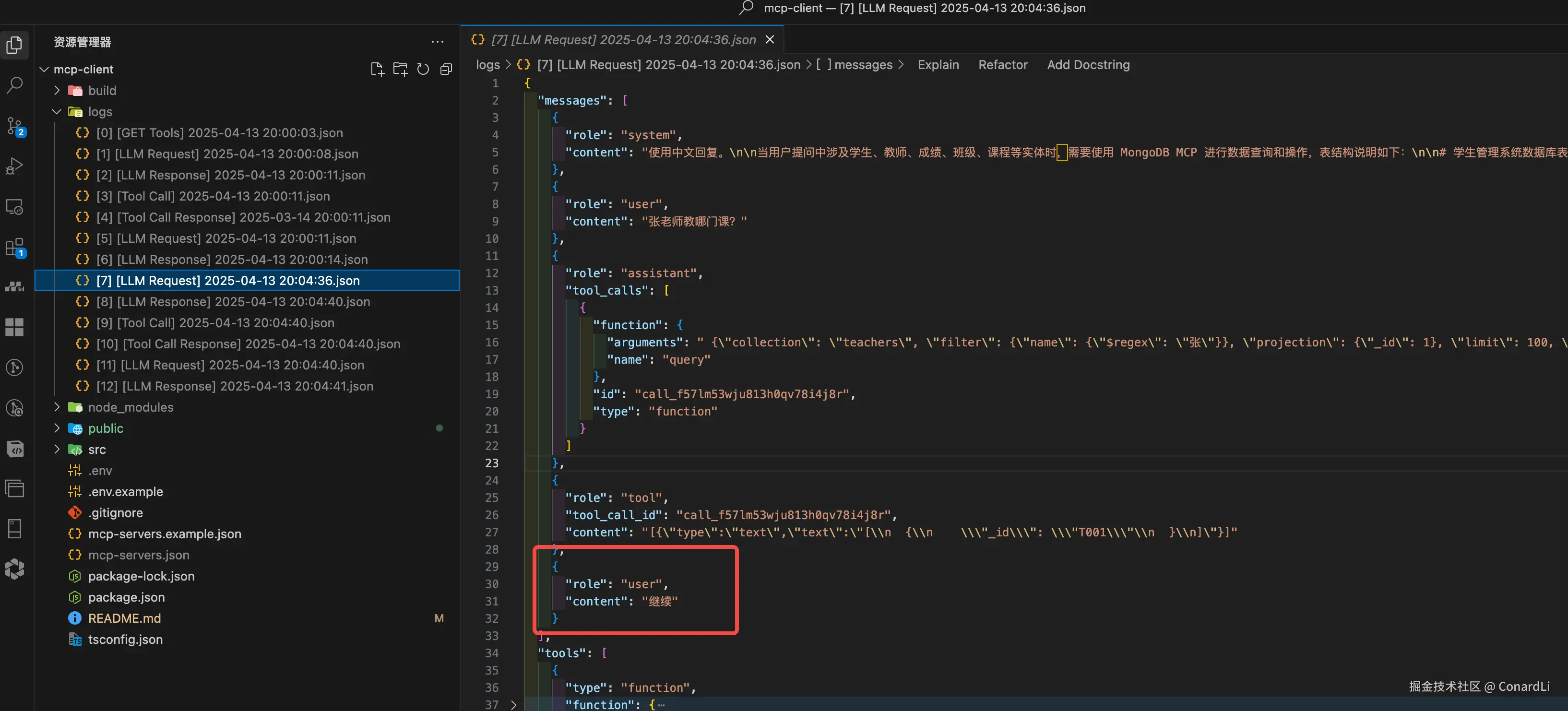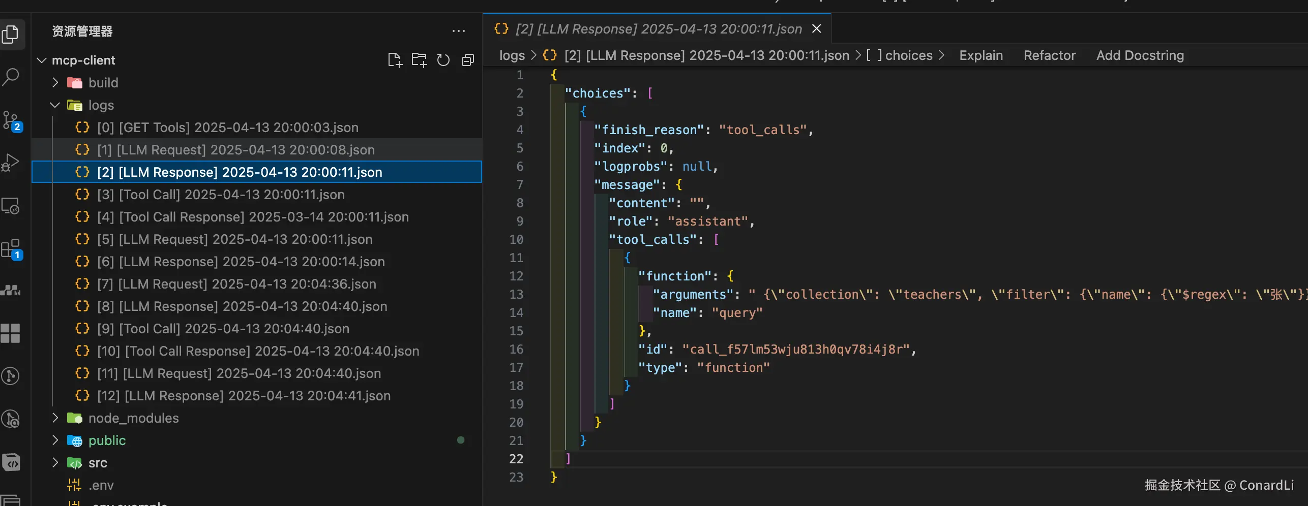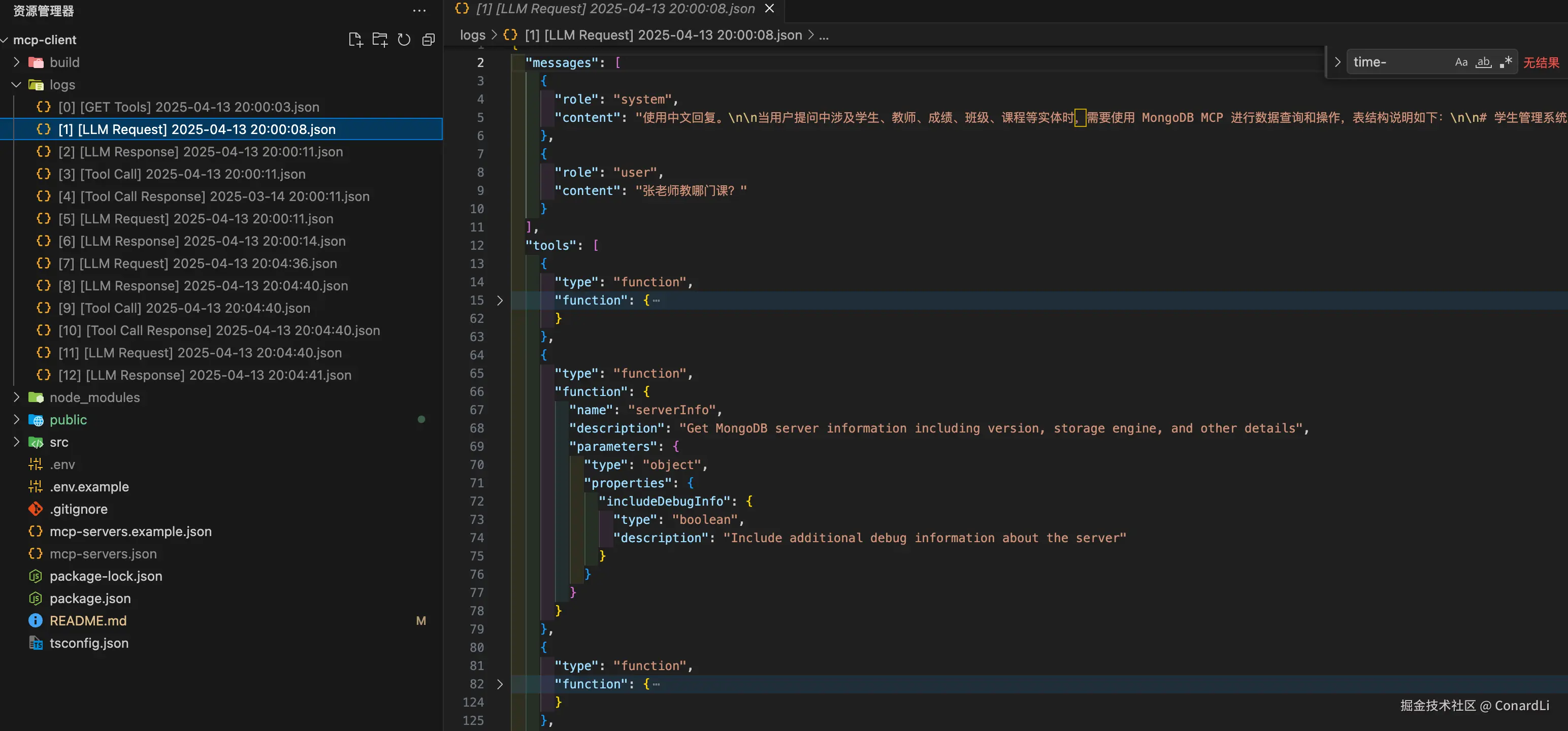MCP Client 包含一个全面的日志系统,详细记录所有关键操作和通信。日志文件保存在 logs/ 目录中,以 JSON 格式存储,方便查询和分析。
