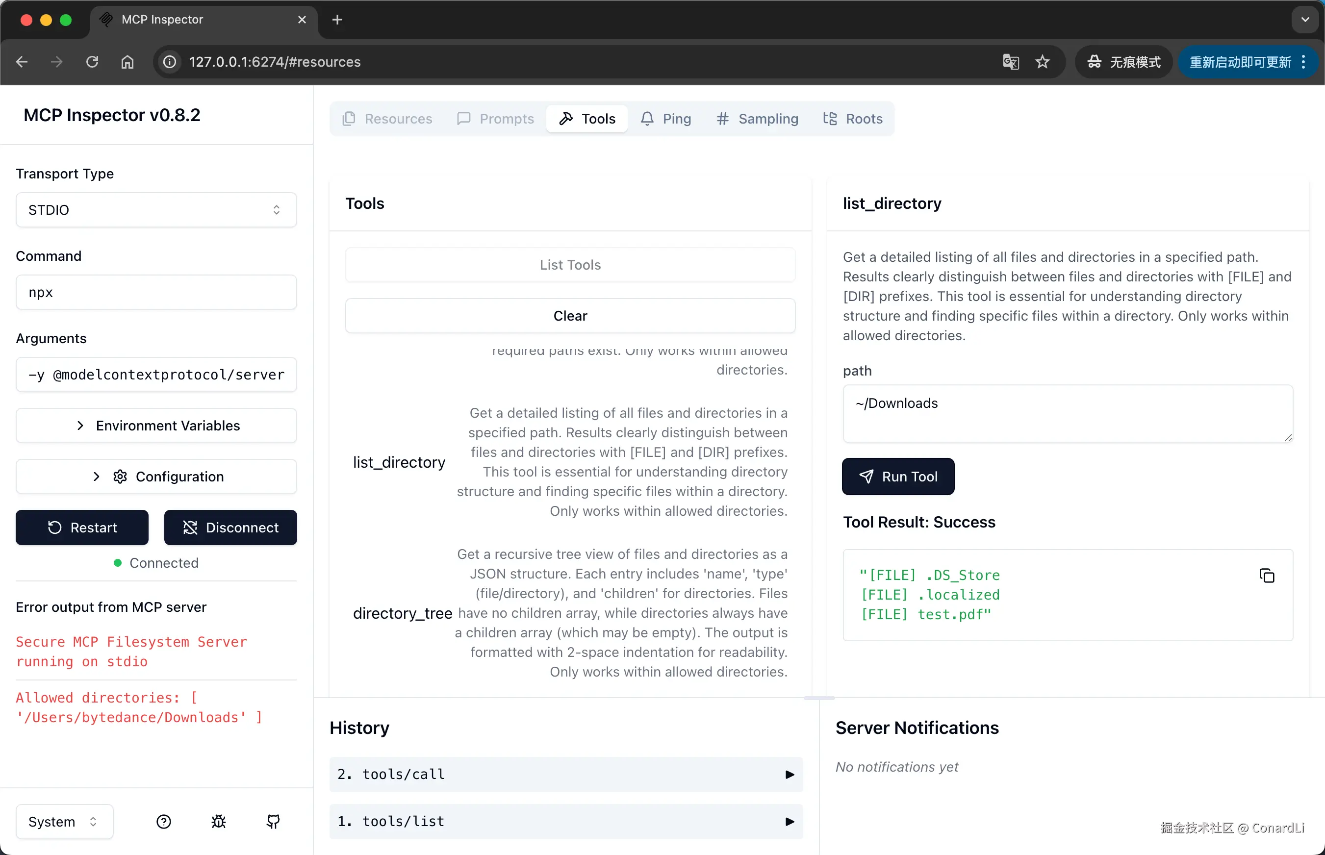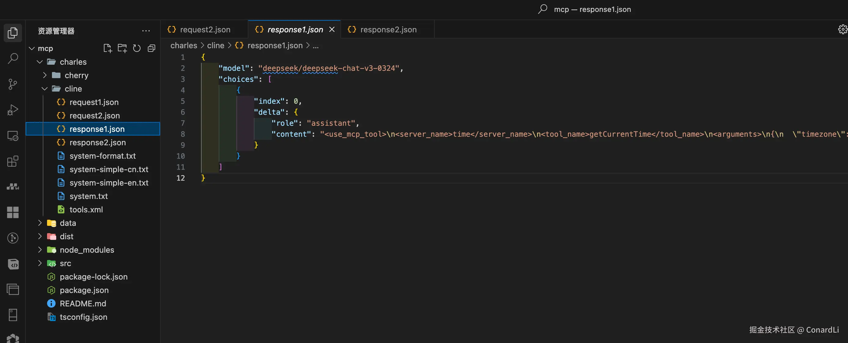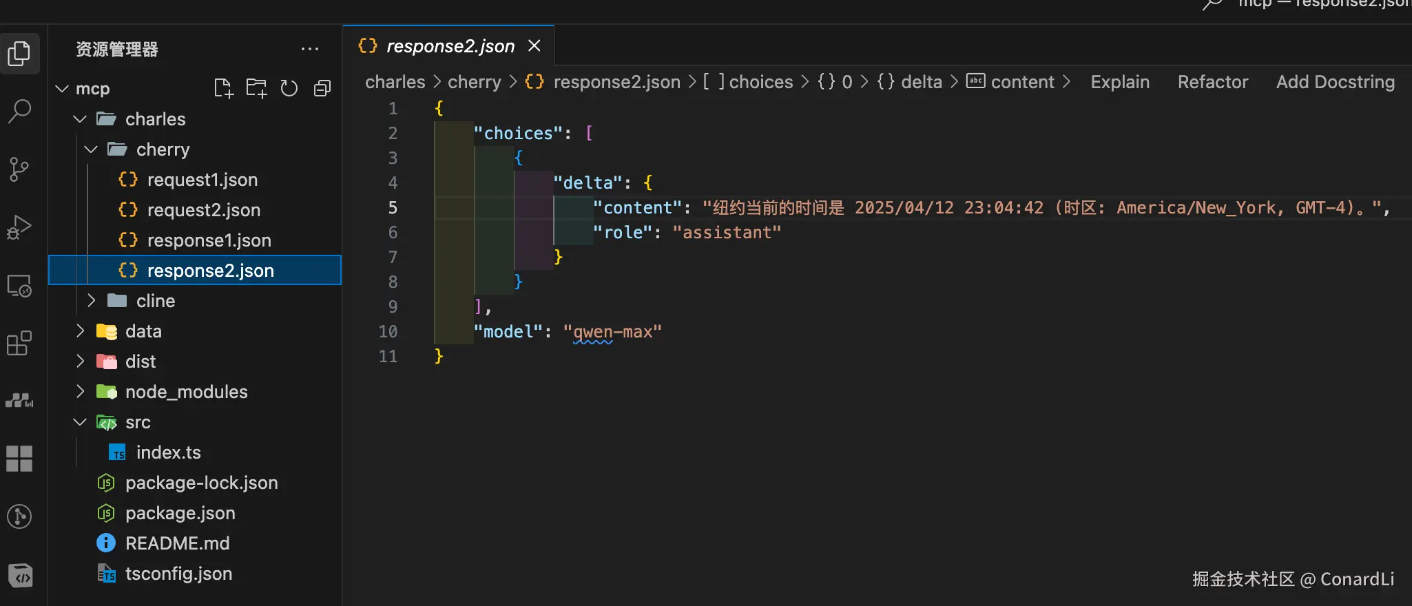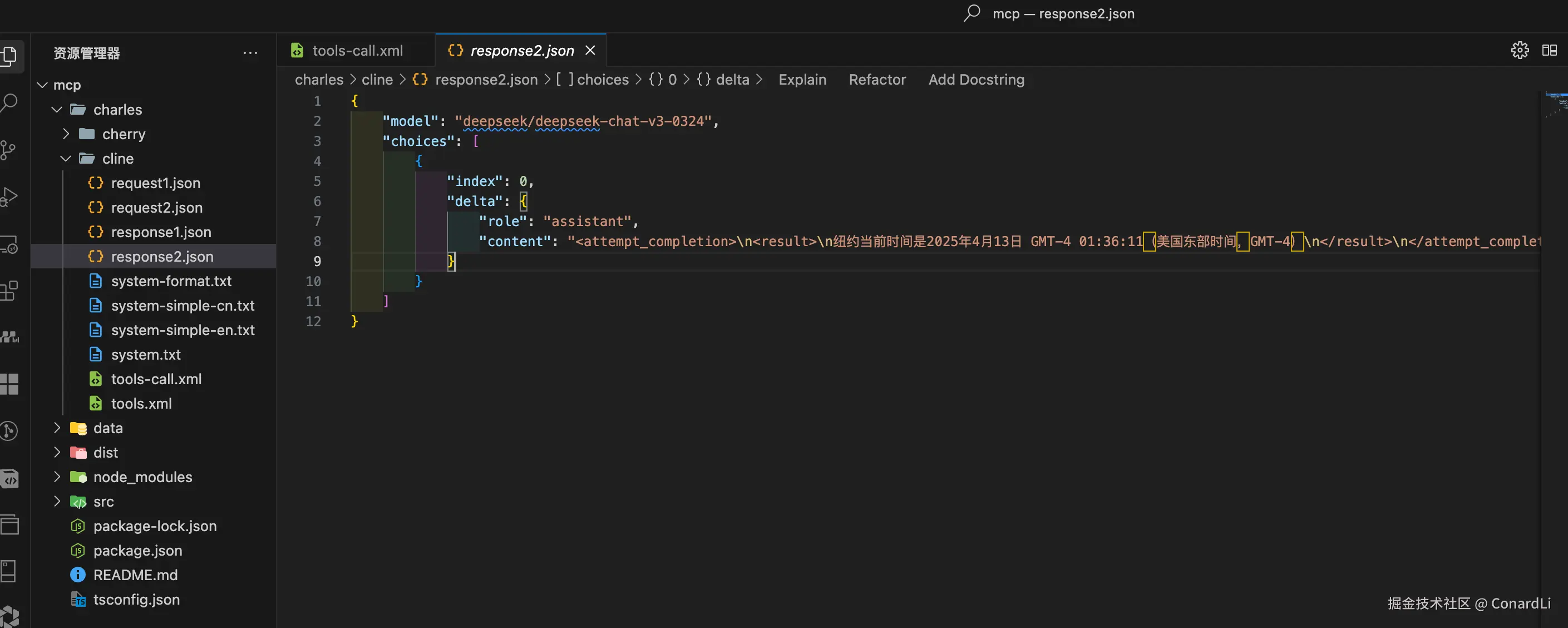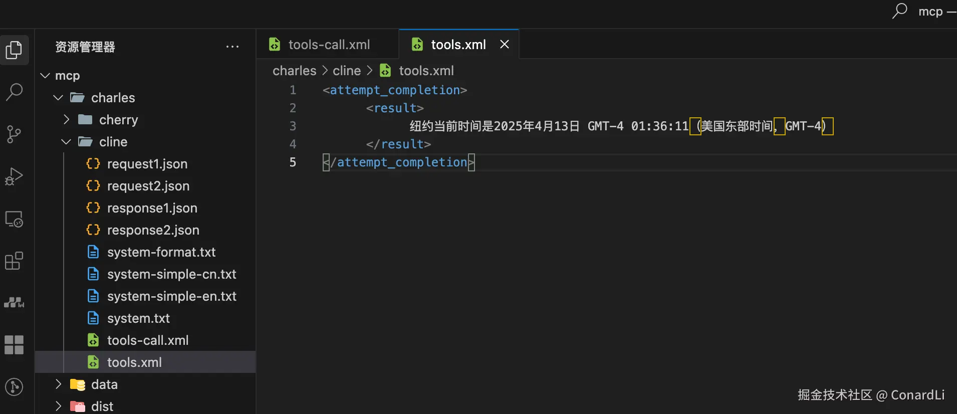 也是一段格式化好的内容,里面返回了当前目录下的所有文件,而模型在接收到这段格式化的输出后,会将其变成口语化的内容再返回到 MCP 客户端。