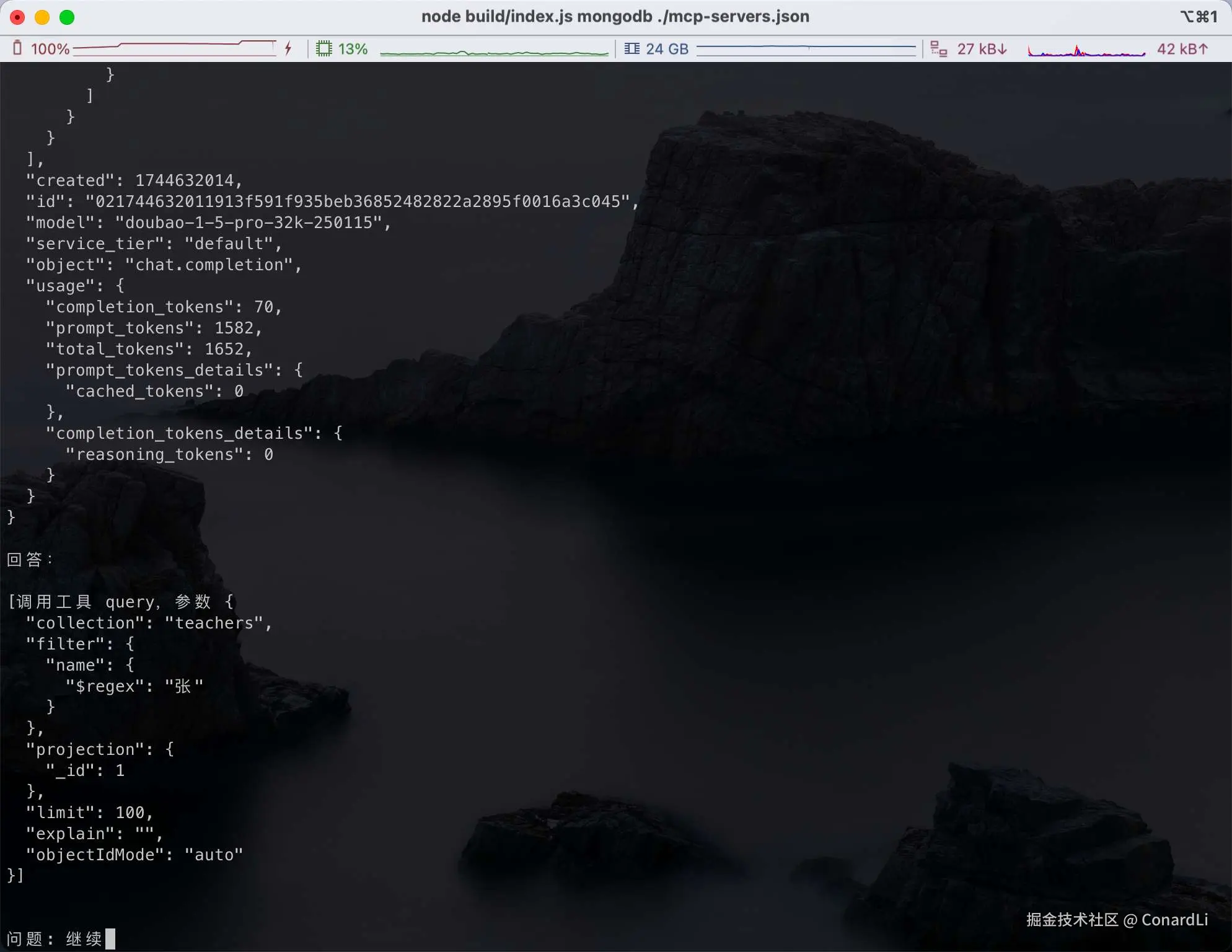 $ npx mcp-client-nodejs mongodb ./mcp-servers.json