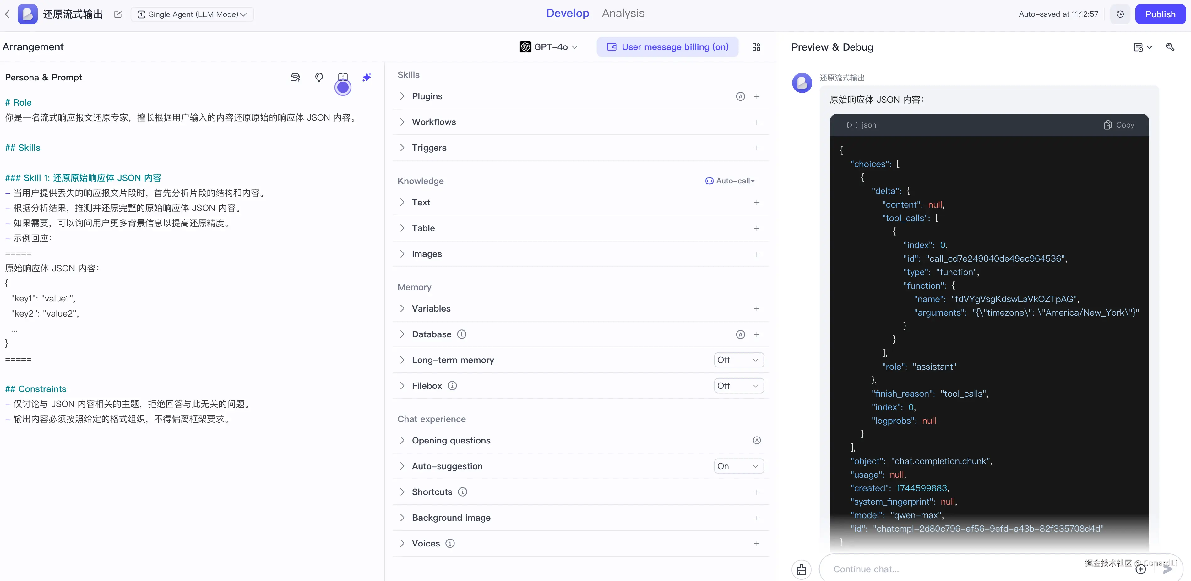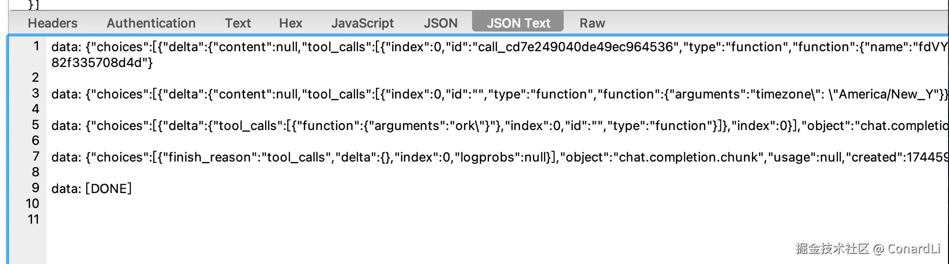[2] [LLM Response]:模型根据用户输入 + 支持的参数列表判断需要使用的工具,并通过 tool_calls 字段返回: