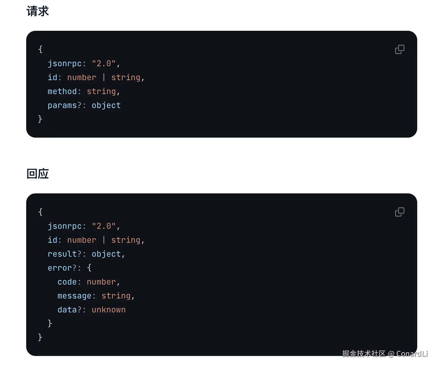 这个输入、输出的参数格式,遵循的是 JSON-RPC 2.0 传输格式,它有一套自己的规则,规定了请求和响应的格式、如何处理错误等,官方文档的中的描述: