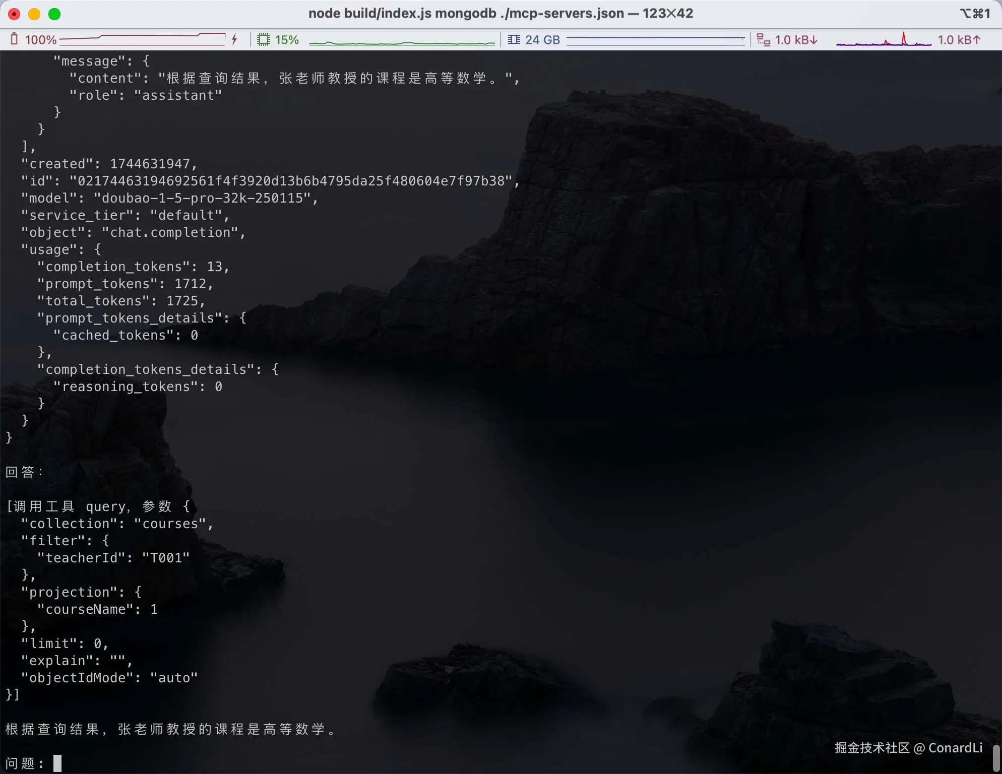 [9] [Tool Call]:客户端执行工具调用,查询课程信息: