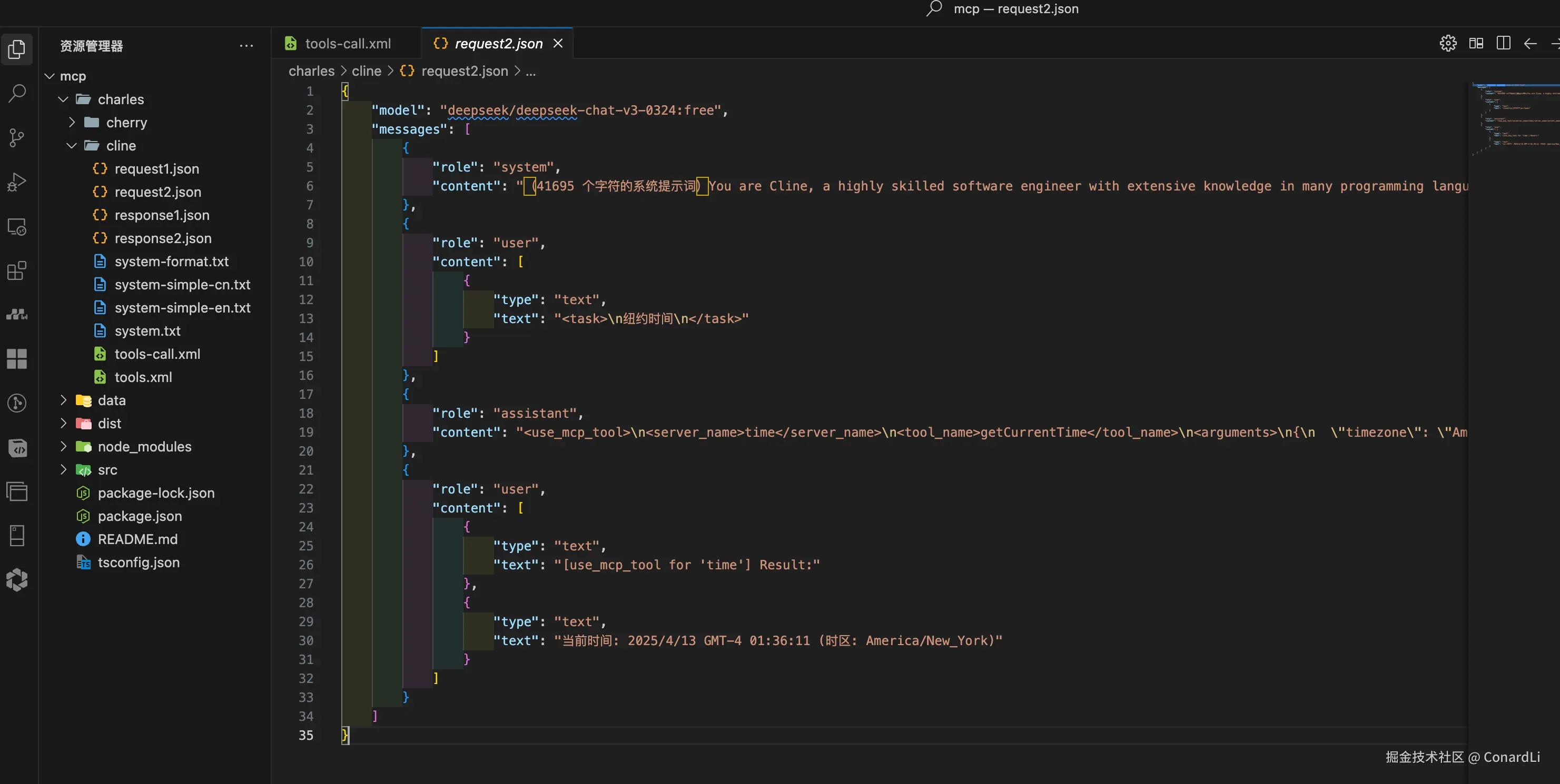 [11] [LLM Request]:客户端将之前工具调用的所有信息再次返回给模型: