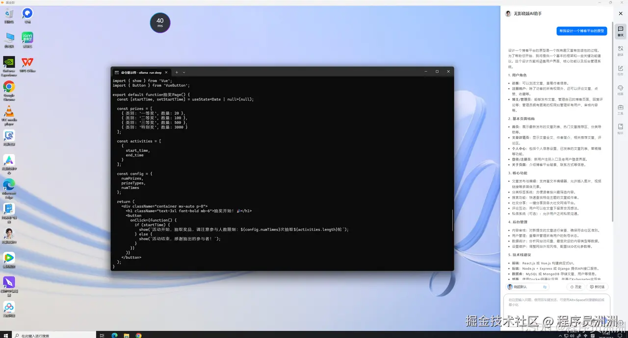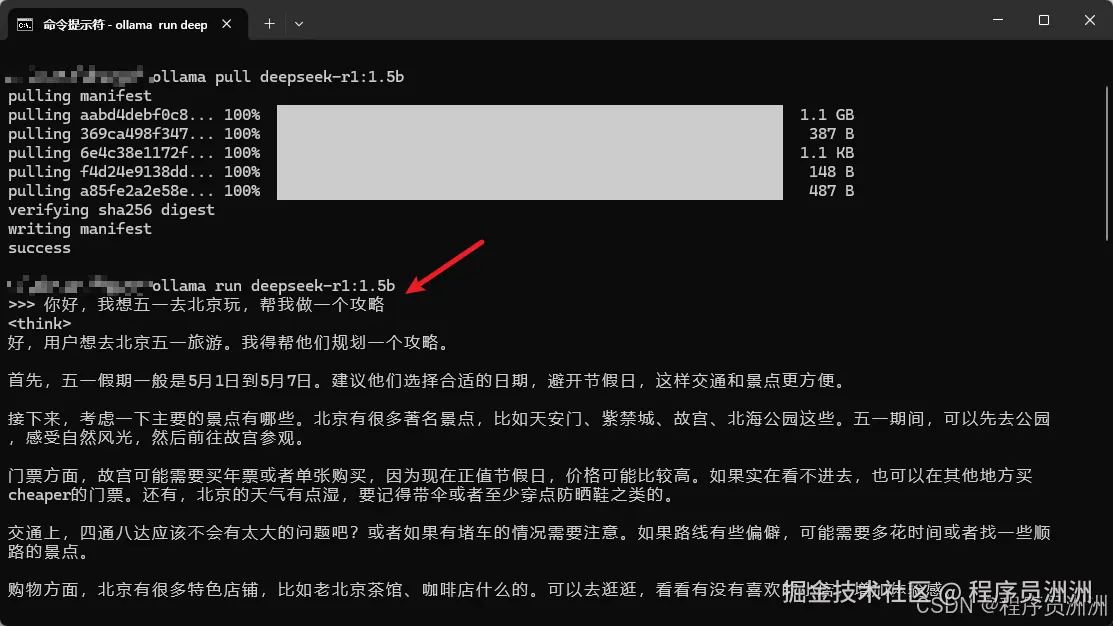 在 AI 应用方面,我尝试在本地电脑上运行 Ollama 框架,并加载开源大模型 DeepSeek 系列以测试其响应速度与系统负载情况。Ollama 本身的安装流程并不复杂,本地环境是 Windows 系统,安装完成后可以通过命令行快速拉取支持的模型。整个环境配置下来大概花了二十分钟左右,算是比较顺利。