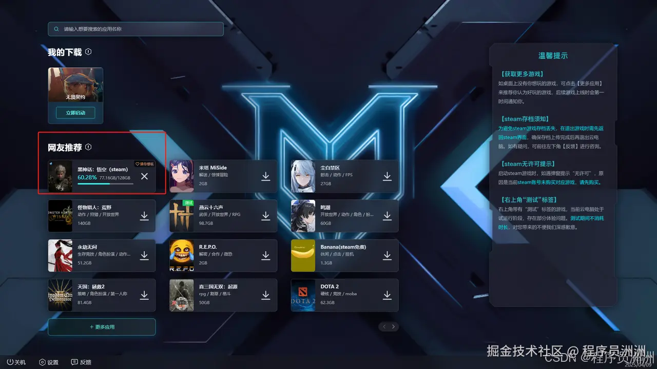 这里我挑选了英雄联盟、黑神话悟空和一些其他的游戏进行了游戏测评,看看三个云电脑的表现。