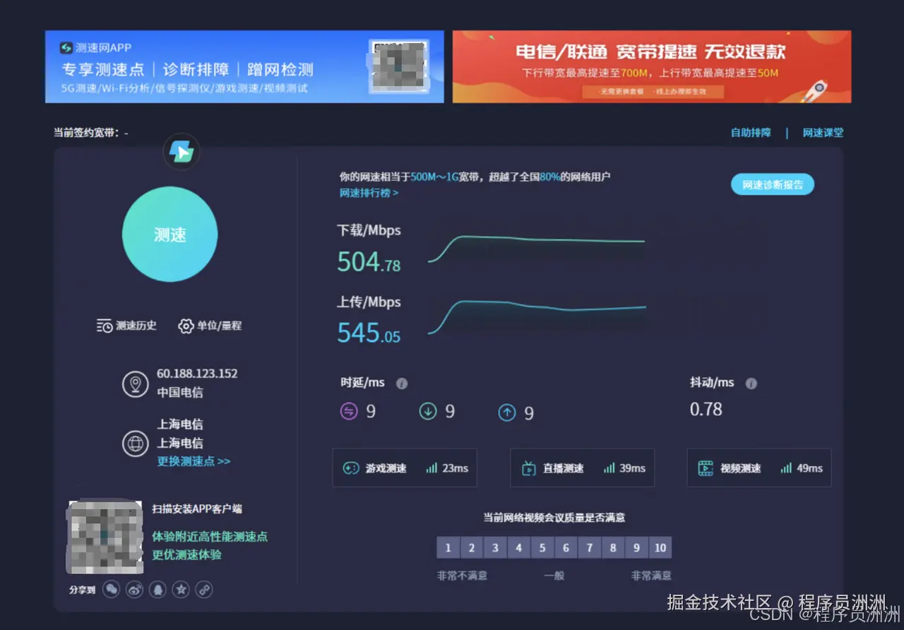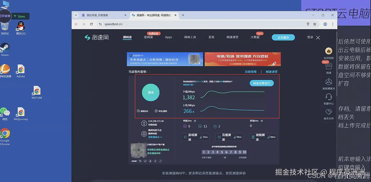 网络层面,依托腾讯云的底层架构,能够保障低延迟、高带宽的连接体验,是整个服务质量的关键支撑,经过测试下载速率可以达到1300+Mbps,上传速率可以达到250+Mbps。