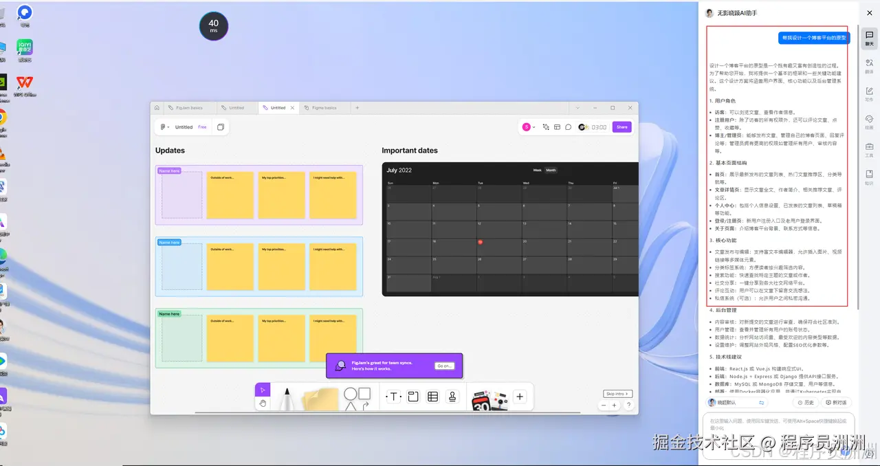 好在 Figma 对硬件要求相对不高,软件安装完成后基本可以正常启动,进行一些基础的设计操作也没有出现明显卡顿。比较有意思的是,无影云电脑系统内还内置了一个“无影晓颖”的智能助手,可以随时调用 AI 来帮你解答使用中的问题,虽然目前功能相对简单,但对于新手用户来说是一个很贴心的补充。