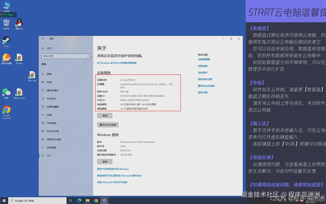 总的来看,START云游戏的硬件配置水准相当于中高端游戏PC,尤其在CPU与内存层面表现出色。缺点是GPU不直通RTX显卡,只能胜任主流1080P或部分4K游戏的运行需求。整体更适合作为“游戏专用”的云电脑使用。