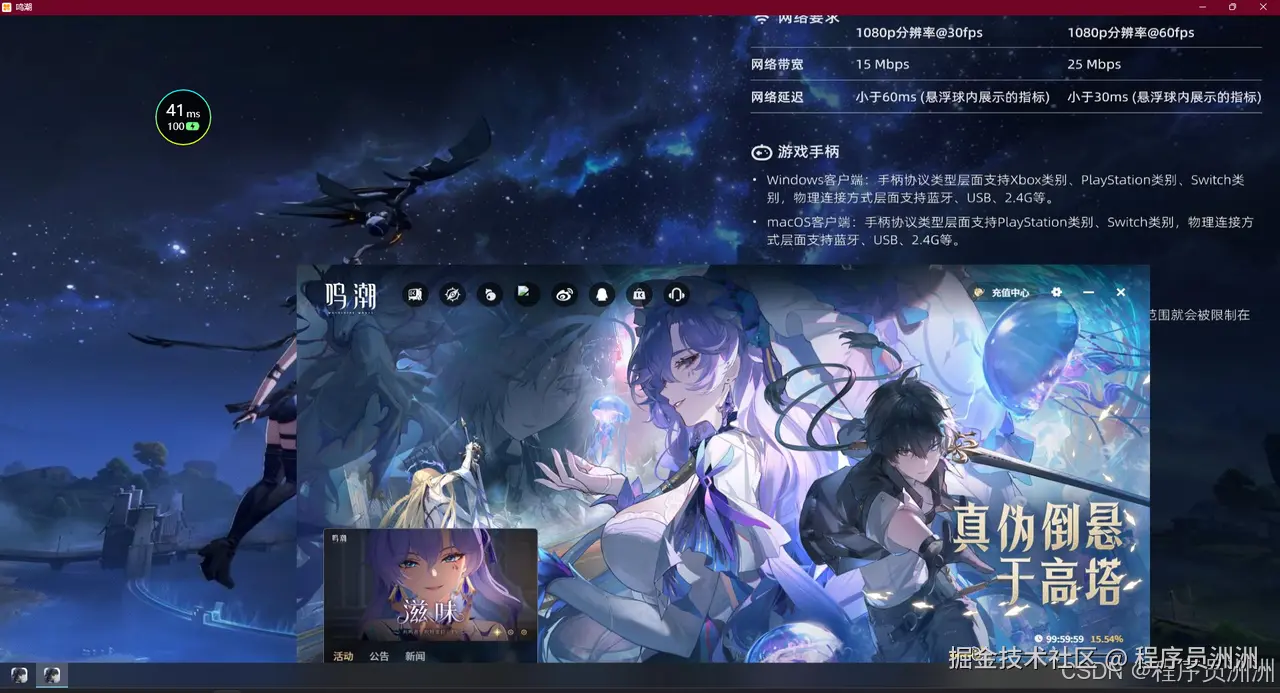 刚刚因为实在带不动黑神话,没有做无影云的电竞游戏测试,所以我这边做一下云游戏功能的鸣潮测试。