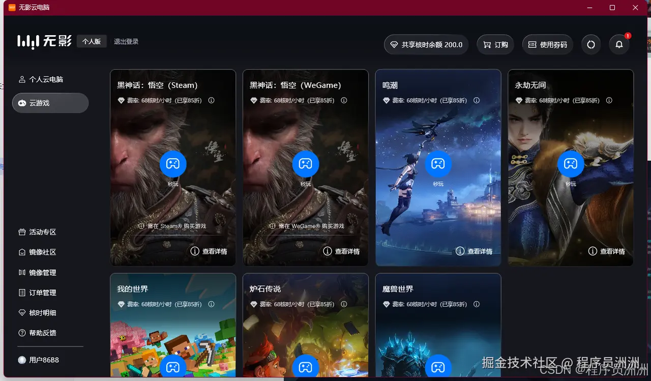 单纯想尝试一下云电脑:无影云黄金版,并不适合游戏玩家,建议用于轻办公或图形要求较低的场景,真心不推荐玩游戏。