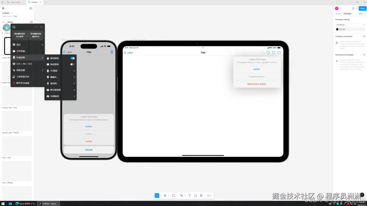 随后我将本地的一个 Figma 设计草稿上传到云端,开始了短暂但完整的一轮实际设计测试。整个过程中,Figma 的画布拖动、缩放、组件对齐、元素拖拽等操作都非常流畅,几乎没有出现卡顿或延迟。同时,ToDesk 还让我印象深刻的一点是,它对外设的支持非常全面——无论是高分辨率显示器的识别,还是本地鼠标的 DPI 精度、甚至是手写板输入,都能在远程云环境中正常工作,和本地体验几乎无差异。