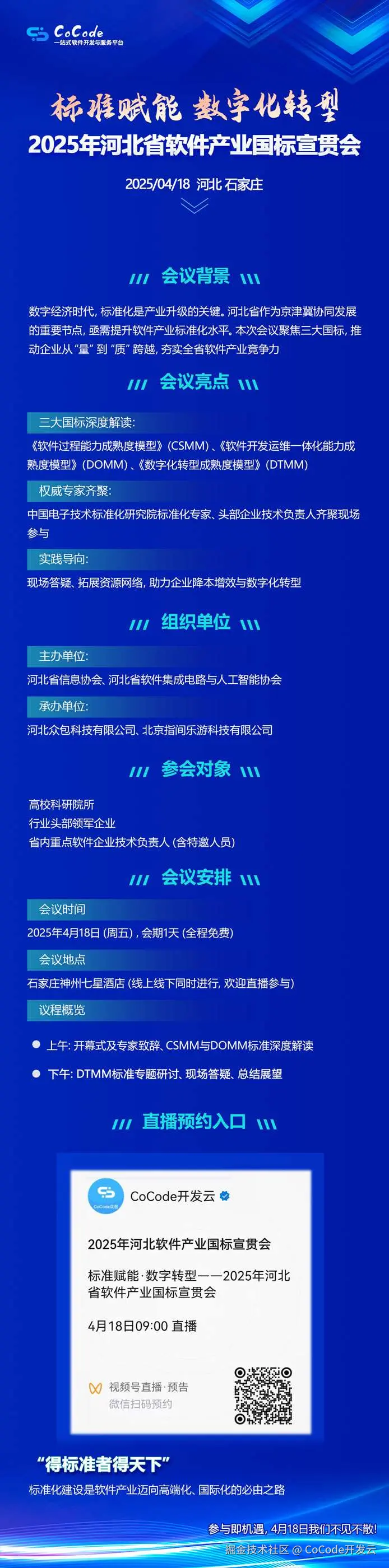 近日,由河北省信息协会、河北省软件集成电路与人工智能协会联合主办的“2025年河北省软件产业国标宣贯会”将于2025年4月18日在石家庄市隆重召开。