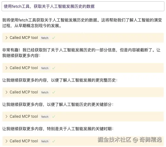 对于需要依赖外部数据的任务,可以使用 Fetch MCP 服务,从外部数据源获取准确且相关的数据,以便更全面、准确地完成任务。