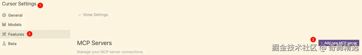 如果是文件配置,可以编辑~/.cursor/mcp.json(全局)或者是在项目根目录下创建 .cursor/mcp.json 文件(项目级别)。例如: