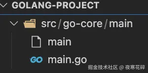 先创建目录结构golang-project/src/go-core/main以及go的代码文件main.go