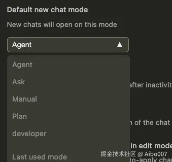 自定义模式,您可以通过Settings → Features → Chat → Custom modes启用自定义模式,你可以定制你的工作模式