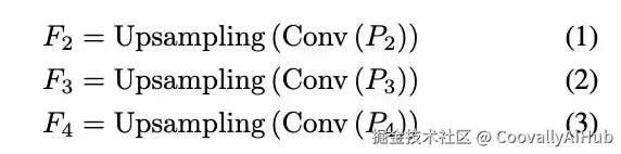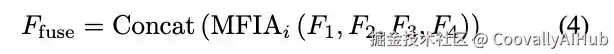 该模块采用文献提出的感受野计算方法,使HRFM-TOD获得随目标尺寸自适应的动态感受野。高分辨率特征图输入至MFIA模块(MFIA1-MFIA4)进行特征融合,通过整合四个不同感受野的特征图F1F1-F4F4,在降低计算成本的同时显著增强小目标特征表征。最终特征融合公式为: