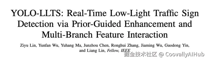 本文提出YOLO-LLTS算法,这是一种专为低光环境设计的端到端实时交通标志检测方法。针对现有数据集中夜间场景样本匮乏的问题,我们构建了中国夜间交通标志样本集(CNTSSS),该数据集涵盖黄昏至深夜多时段低光条件图像,包含城市、高速公路、乡村等多场景及不同天气条件下的交通标志样本。通过引入高分辨率小目标特征检测模块(HRFM-TOD),有效解决了低光环境下小目标特征模糊的难题,在提升检测精度的同时显著加快了推理速度。设计的基于多分支特征交互注意力机制(MFIA)实现了多感受野特征的深度交互与融合,增强了模型对关键信息的捕获与利用能力。提出的先验引导增强模块(PGFE)则有效缓解了低光环境下的噪声增强、对比度下降及图像模糊等问题,使检测性能得到显著提升。