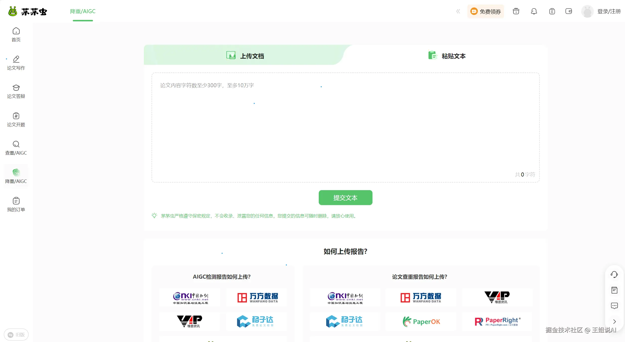 茅茅虫呢,是一个集合工具式的论文平台,就像是一个论文的“百宝箱”。它主要的“战场”在于做论文报告、论文开题、论文答辩这些方面,但它也没有忘记自己在降重和降AIGC方面的使命。在这个平台上,你能感受到一站式服务的便捷,既能完成论文相关的各项任务,又能顺便把AI率降下来。