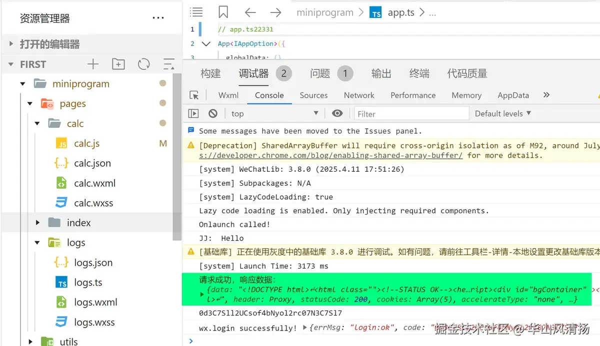 请求终于成功了,完成了微信小程序向百度首页发起请求,并打印请求结果的场景实现。