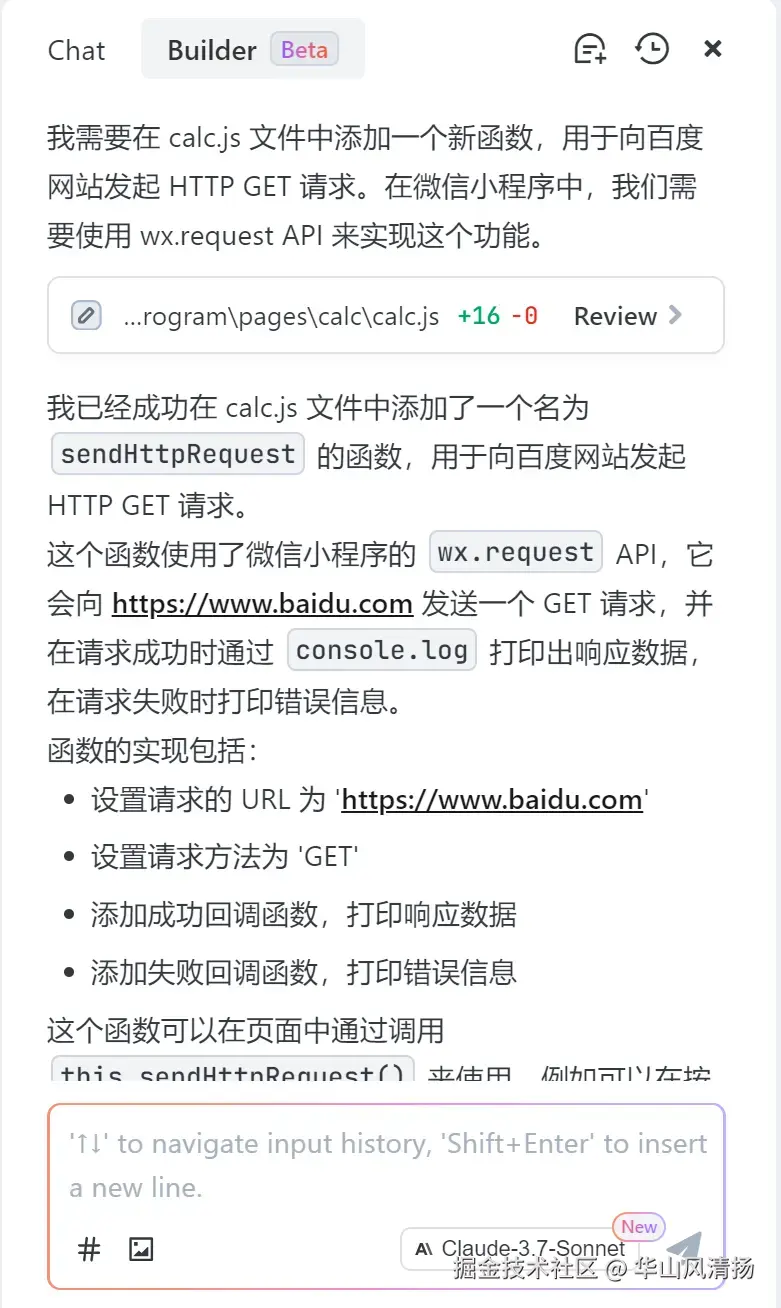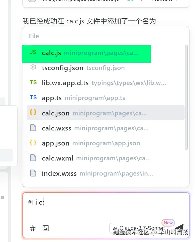 我从中选择 calc.js, 这样 Trae 就能精确的在我选择的这个文件里,插入 HTTP 通信逻辑,而不会胡乱修改其他代码了。