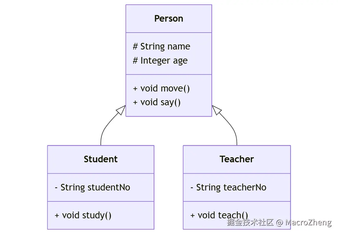 类图(Class Diagram)可以表示类的静态结构,比如类中包含的属性和方法,还有类的继承结构。下面我们用Mermaid来画个类图。