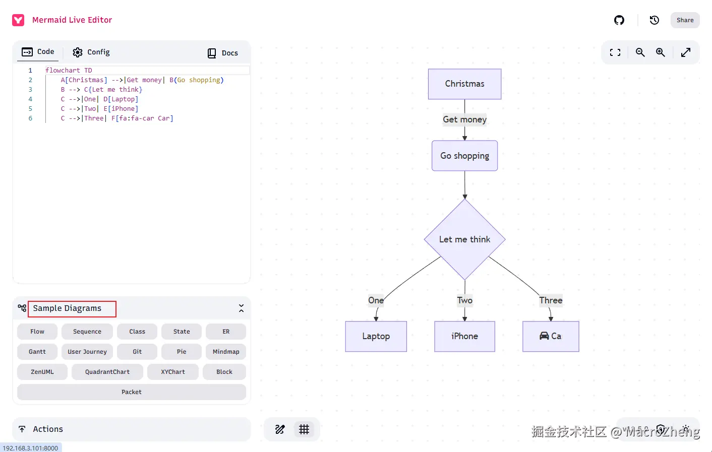 Sample Diagrams来查看生成图表的效果,访问地址:http://192.168.3.101:8000