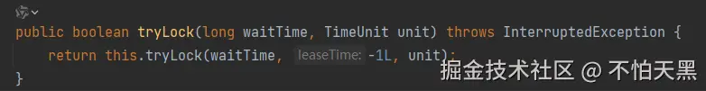 public boolean tryLock(long waitTime, long leaseTime, TimeUnit unit) throws InterruptedException {