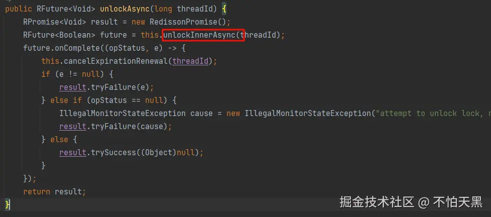 在unlockInnerAsync中调用lua脚本进行锁的释放操作