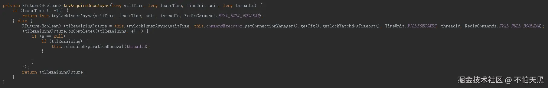 private RFuture<Boolean> tryAcquireOnceAsync(long waitTime, long leaseTime, TimeUnit unit, long threadId) {