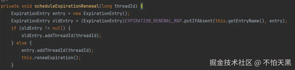 这个putIfAbsent可以保证不管锁重入了多少次,每次拿到的ExpirationEntry拿到的都是同一个值