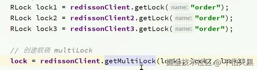 为了解决这个问题,redission提出来了MutiLock锁,使用这把锁咱们就不使用主从了,每个节点的地位 都是一样的, 这把锁加锁的逻辑需要写入到每一个主丛节点上,只有所有的服务器都写入成功,此时才 是加锁成功,假设现在某个节点挂了,那么他去获得锁的时候,只要有一个节点拿不到,都不能算是加 锁成功,就保证了加锁的可靠性。