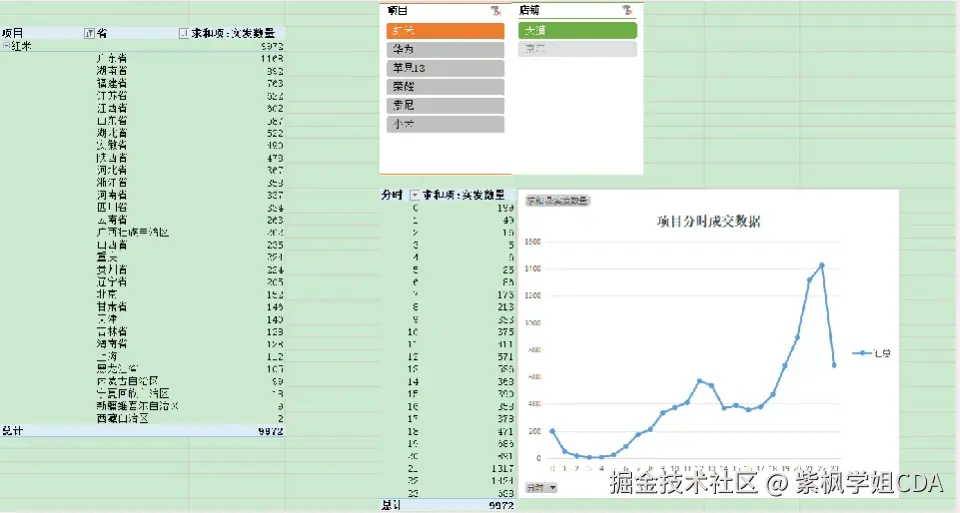 通过整合店铺同期销售数据、每日销售数据、不同渠道推广数据等,利用函数匹配和数据透视表,实现对店铺数据的实时监控。