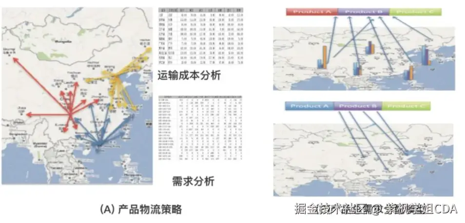 在物流配送方面,可利用大数据优化配送路线,在保证速度的同时降低物流成本,就像滴滴打车通过后台数据优化线路一样。