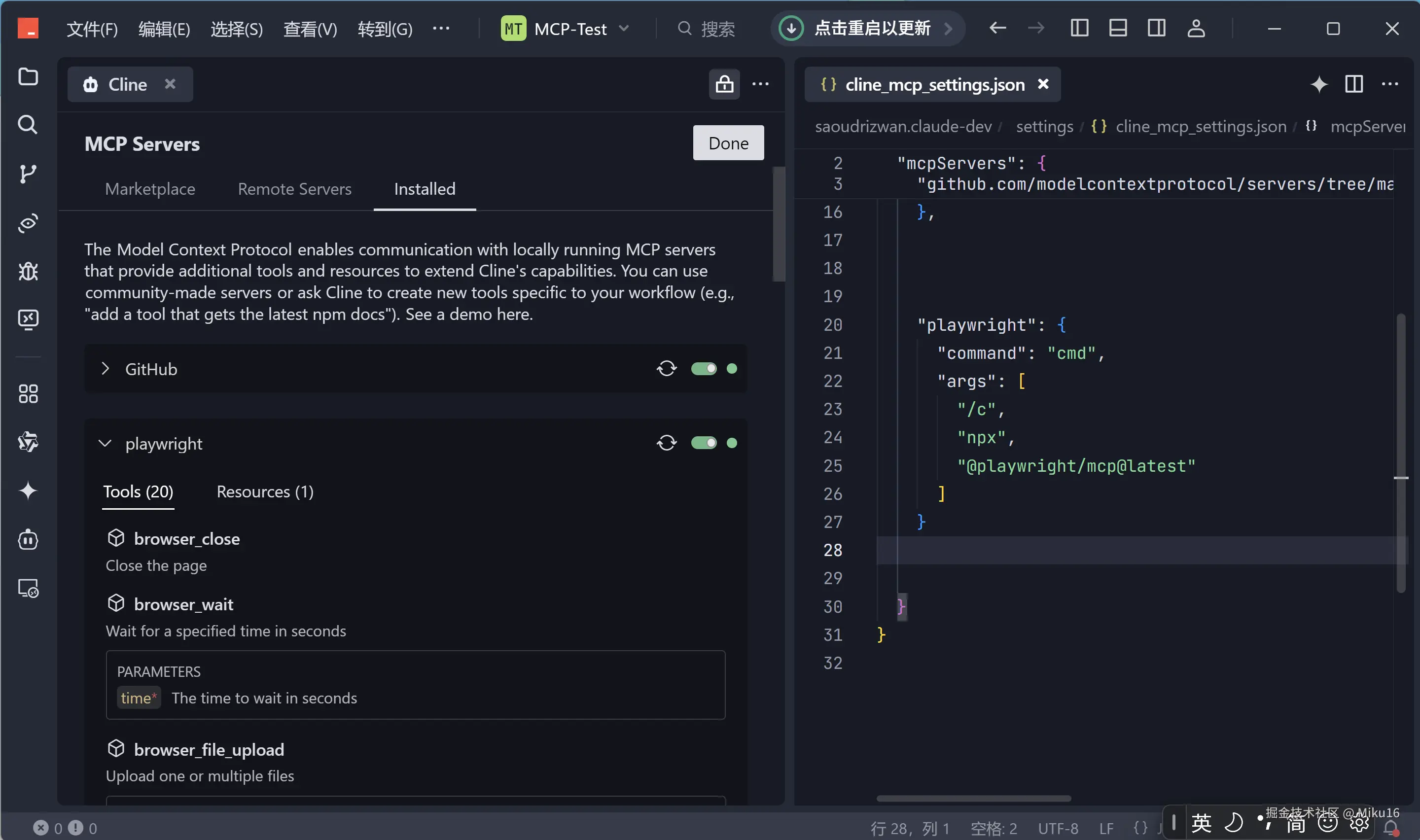 - 配置 Playwright-MCP 服务器: 在