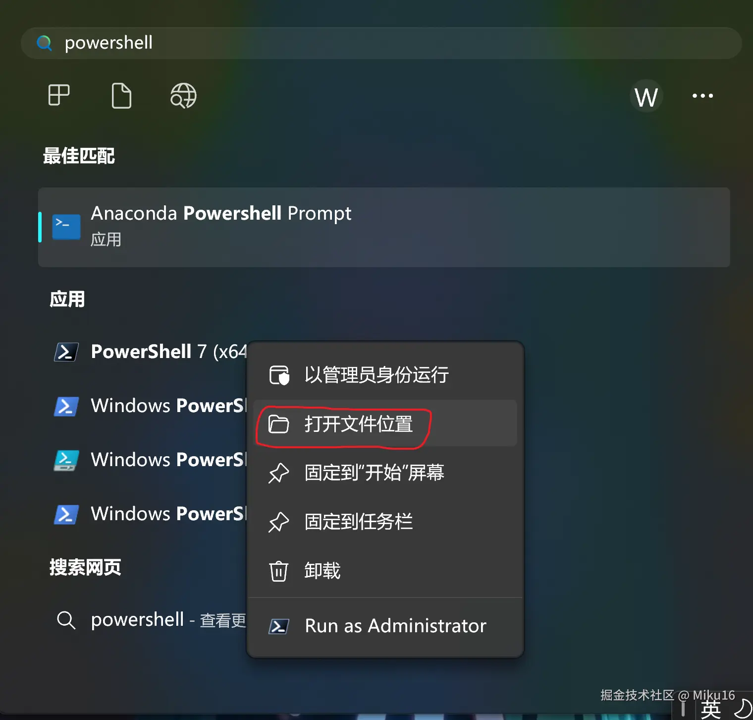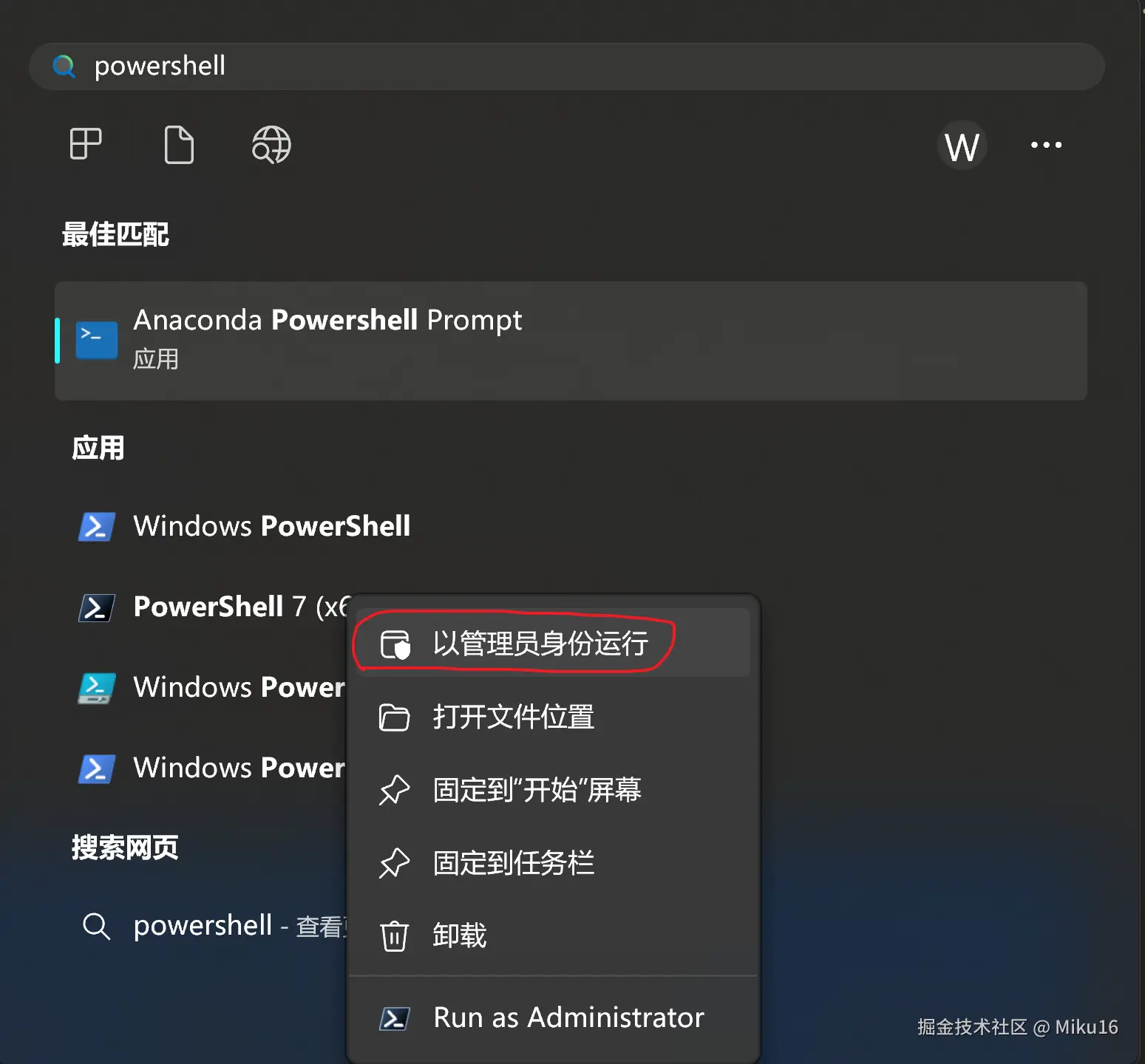 以管理员方式打开PowerShell。